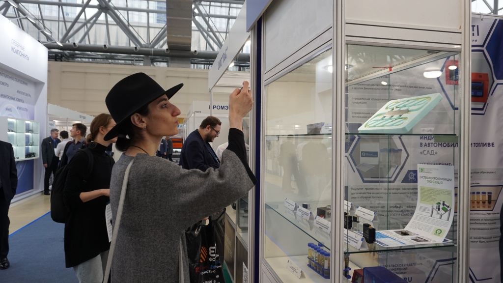 На стенде ВНИИФТРИ также представлены разработки в сфере контроля качества продукции – спектрофотометрический анализатор красителей ФАСК с расширенными характеристиками (прибор, позволяющий определить наличие синтетических красителей, а также процент содержания спирта в красных винах, соках, и других биотехнологических средах) и оптический индикатор серы в автомобильном топливе «САД», предназначенный для экспресс-анализа при отборе образцов на АЗС. Специалисты демонстрируют работу этих разработок на конкретных образцах продукции.